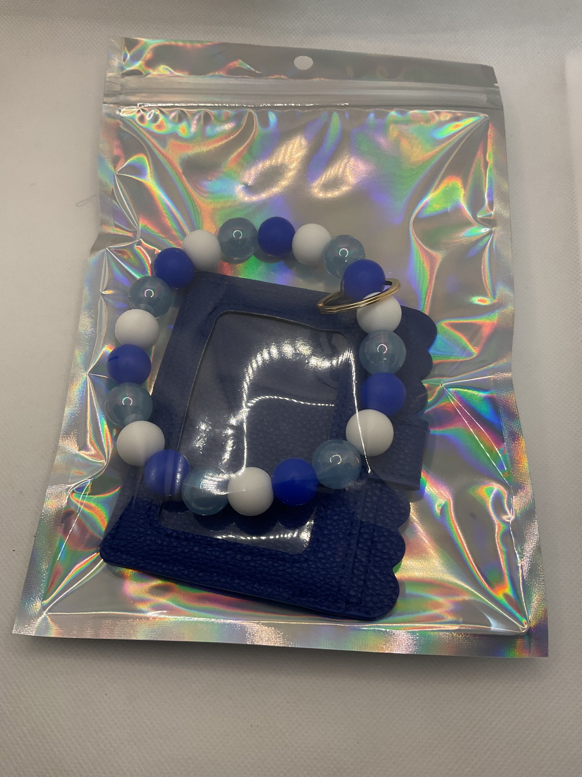 Blue & White Keychain Wristlet